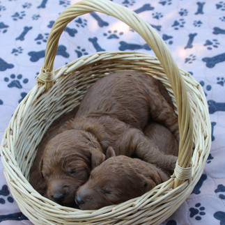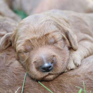 Maddy's Summer/Fall litter will arrive any day. We can't wait to meet her puppies! These F1B mini Goldendoodles will be around 20-25 lbs when fully grown. They will be golden/red with a curly coat. Deposits are available for this litter. Happiness is born here!